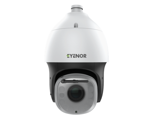 Eyenor IP PTZ cameras combine pan, tilt, and zoom features to provide a single camera's wide-area coverage and fine details. The capability to zoom in and out with high image quality enables the verification of potential safety problems. The auto-patrol mode checks larger areas with ease. The IP PTZ cameras provide fantastic long-range vision with their excellent heat dissipation system, intelligent temperature control, and IR illuminator. They are available with long-range laser illuminators that allow them to see for miles in darkness.