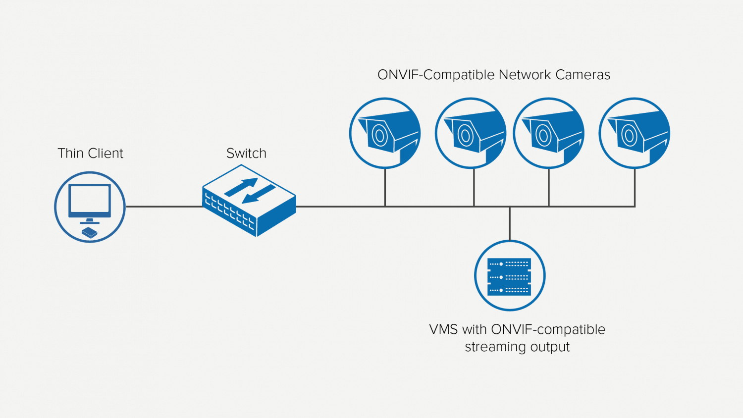 The Thin Client can be used to drive individual panels in a video wall, using video from the Senstar Symphony VMS or ONVIF-compatible sources.