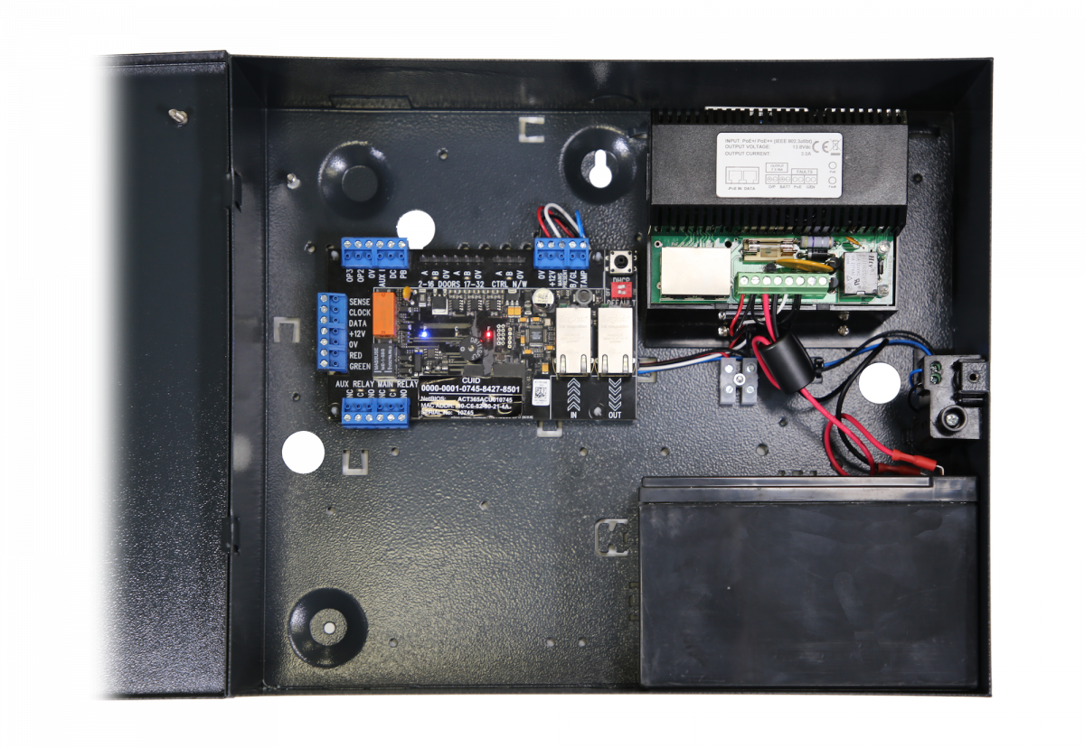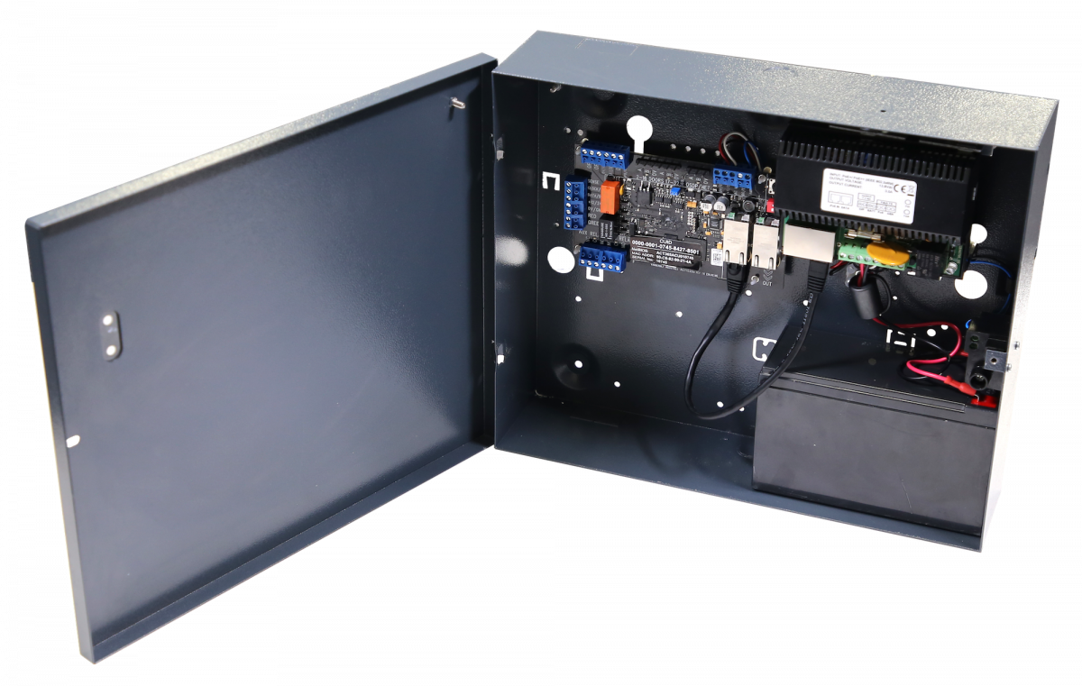 - Automatic notification on critical door events, voltage problems, break glass, tamper