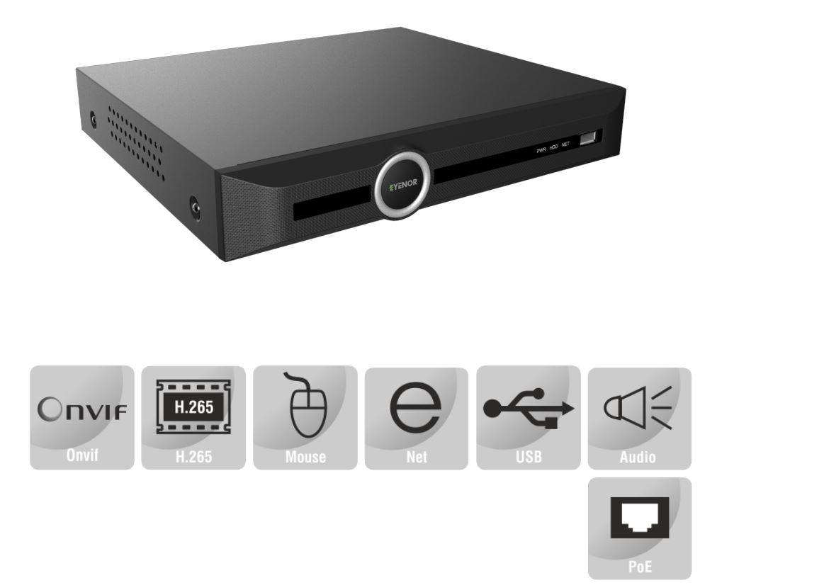 8Ch Embedded Network Video Recorder with 1 HDD Bay Supports 8# PoE Ports, HDMI, VGA and ONVIF