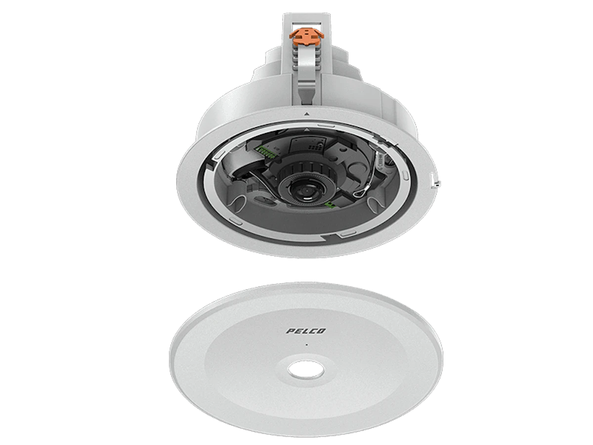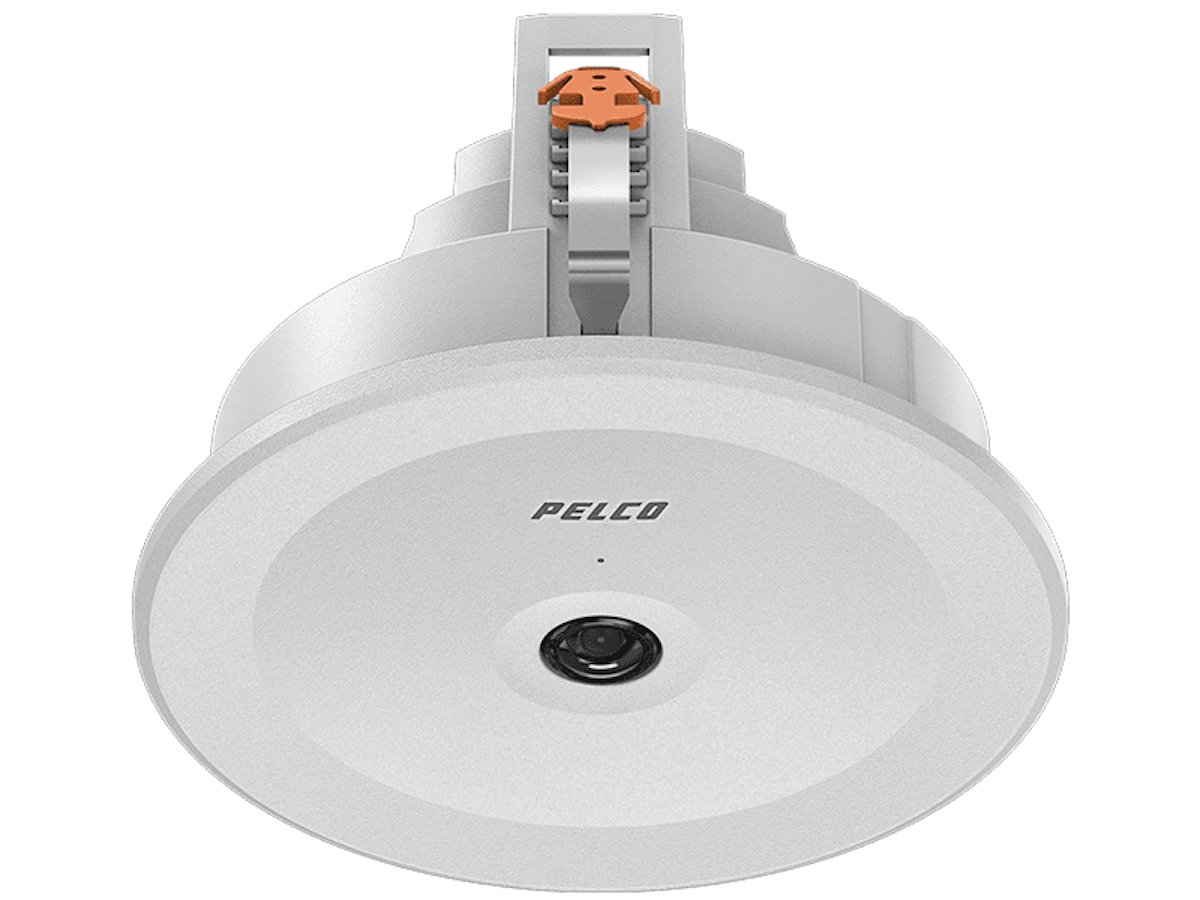 The Pelco Fisheye In-Ceiling Mount (Indoor) camera is a sleek, low-profile design that provides a discreet video security solution. Included is a paintable front plate that facilitates blending with interior aesthetics.